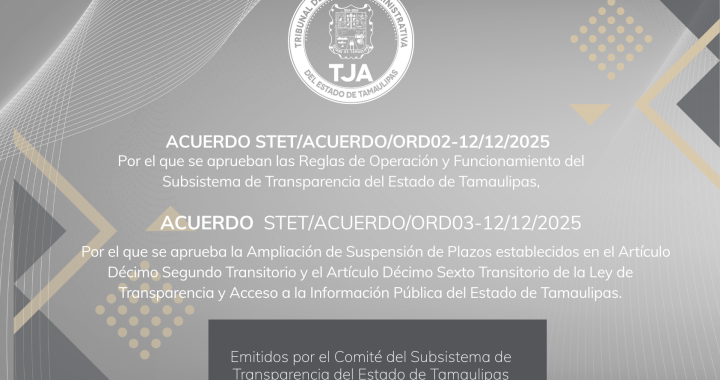 Con el propósito de dar cumplimiento al segundo transitorio de las «Reglas de Operación y Funcionamiento del Subsistema de Transparencia del Estado de Tamaulipas» y segundo transitorio del «la «Acuerdo de Ampliación de Suspensión de Plazos establecidos en el Artículo Décimo Segundo Transitorio y el Artículo Décimo Sexto Transitorio de la Ley de Transparencia y Acceso a la Información Pública del Estado de Tamaulipas», que a la letra señalan: